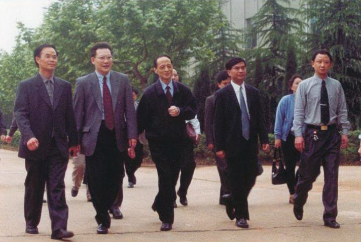 6、1999年10月18日,時(shí)任省長(zhǎng)舒圣佑(左3)在市長(zhǎng)曹二俚的陪同下來(lái)廠調(diào)研
