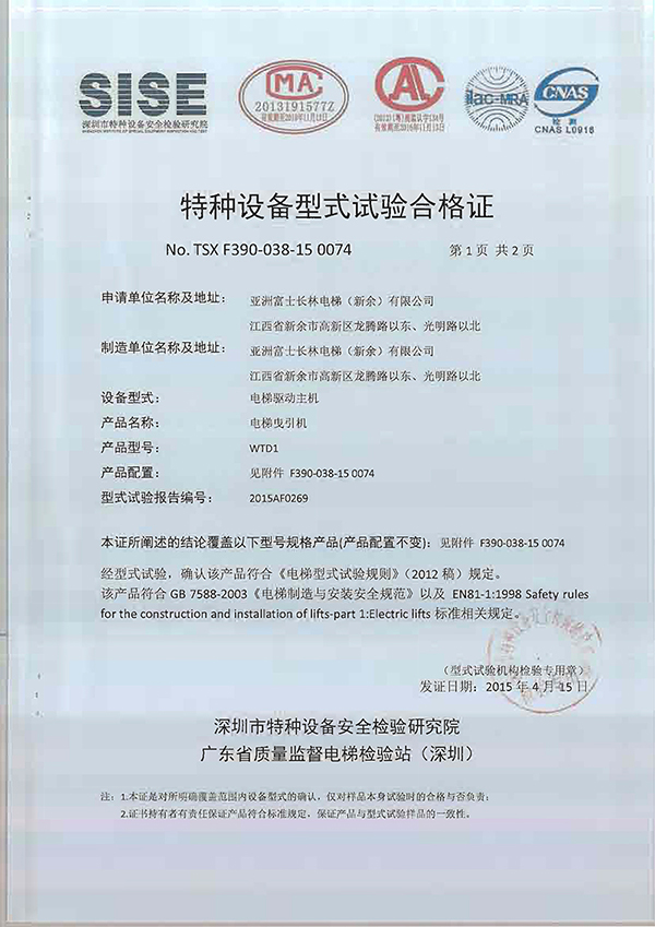 WTD1曳引機(jī)合格證