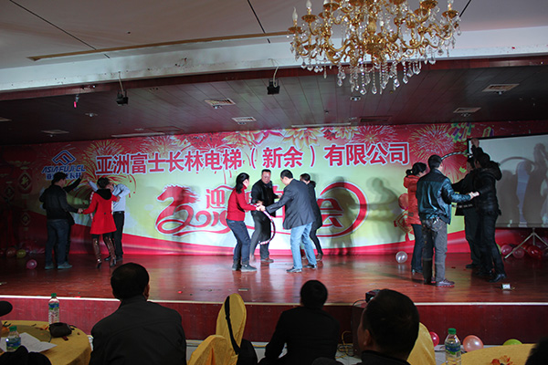 2014年1月24日下午,亞洲富士長林電梯公司年會在中山國際大酒店三樓演藝大廳隆重舉行,參加此次年會的有公司領(lǐng)導和全體員工、新余地區(qū)的主要供應商代表。為保障年會的順利召開,公司工會進行了精心的準備,提前一個月通知各部門準備表演的節(jié)目,工會委員認真策劃年會流程、準備游戲節(jié)目和道具、備好豐富的獎品。