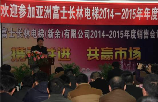 隨后,銷售總監(jiān)佟德賢先生與各位參會人員分享了2014年亞洲富士長林電梯所取得的驕人成績。就2014年銷售工作總結(jié)暨2015年銷售工作規(guī)劃做了詳細(xì)的 主題報告,他說:針對2014年銷售工作各方面數(shù)據(jù)來看,我們在過去的一年里取得了不斐的業(yè)績和顯著的進(jìn)步,在座諸位經(jīng)理都是公司了不起的銷售精英,在此代表公司表示感謝。但是總結(jié)之后,我們也會發(fā)現(xiàn)存在不足的地方,因為各方面資源沒有達(dá)到最好優(yōu)化配置,造成個別區(qū)域增長速度較低的情況。因此,公司在2015年將繼續(xù)加強(qiáng)銷售網(wǎng)絡(luò)建設(shè)和銷售員素質(zhì)的提高等工作。綜合市場各方面因素來展望2015,不論是從國家大的政策來看、還是從行業(yè)內(nèi)競爭整合態(tài)勢來看,它將是我們發(fā)展提升至關(guān)重要的一年。公司有信心、有決心繼續(xù)夯實(shí)內(nèi)部平臺,為我們的銷售人員提供一個更好的發(fā)展空間。