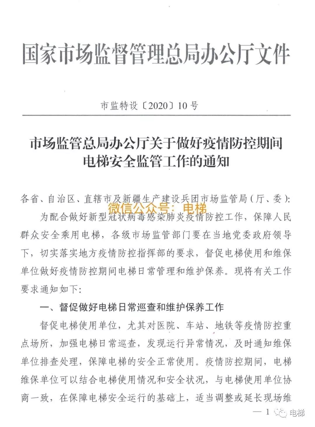總局回復(fù):針對(duì)疫情防控期間的電梯安全要求,請(qǐng)查閱《市場(chǎng)監(jiān)管總局辦公廳關(guān)于疫情防控期間電梯安全監(jiān)管工作的通知》(市監(jiān)特設(shè)〔2020〕10號(hào))。