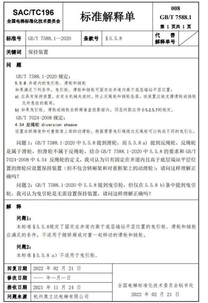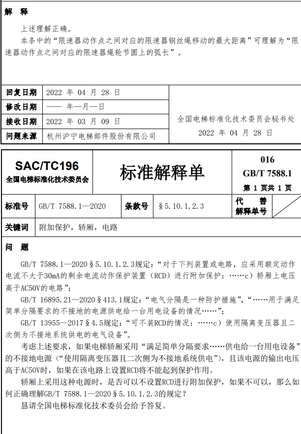 GB/T 7588.1—2020第23號(hào)解釋單發(fā)布(附1-22號(hào)解釋單)